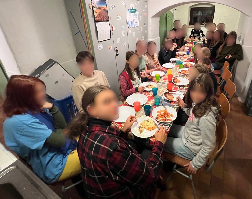 Trotz der unterschiedlichen Zeiten erleben wir uns als eine große Gruppe. Viele der älteren Jugendlichen nehmen weiterhin an der HKJuJu teil, und ein besonderer Höhepunkt ist unser gemeinsames Abendessen um 18:00 Uhr, bei dem beide Gruppen zusammenkommen und Gemeinschaft leben.